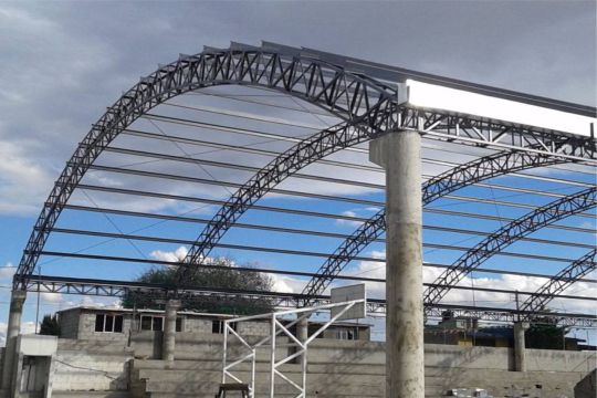 Estos tipos de techo en estructura metalica suelen tener diversas denominaciones tales como: Techos circulares metalicos, techos circulares metálicos, techo tijerales redondos, techos con tijerales de fierro circulares, techos de estructura metalica redonda, entre otros.